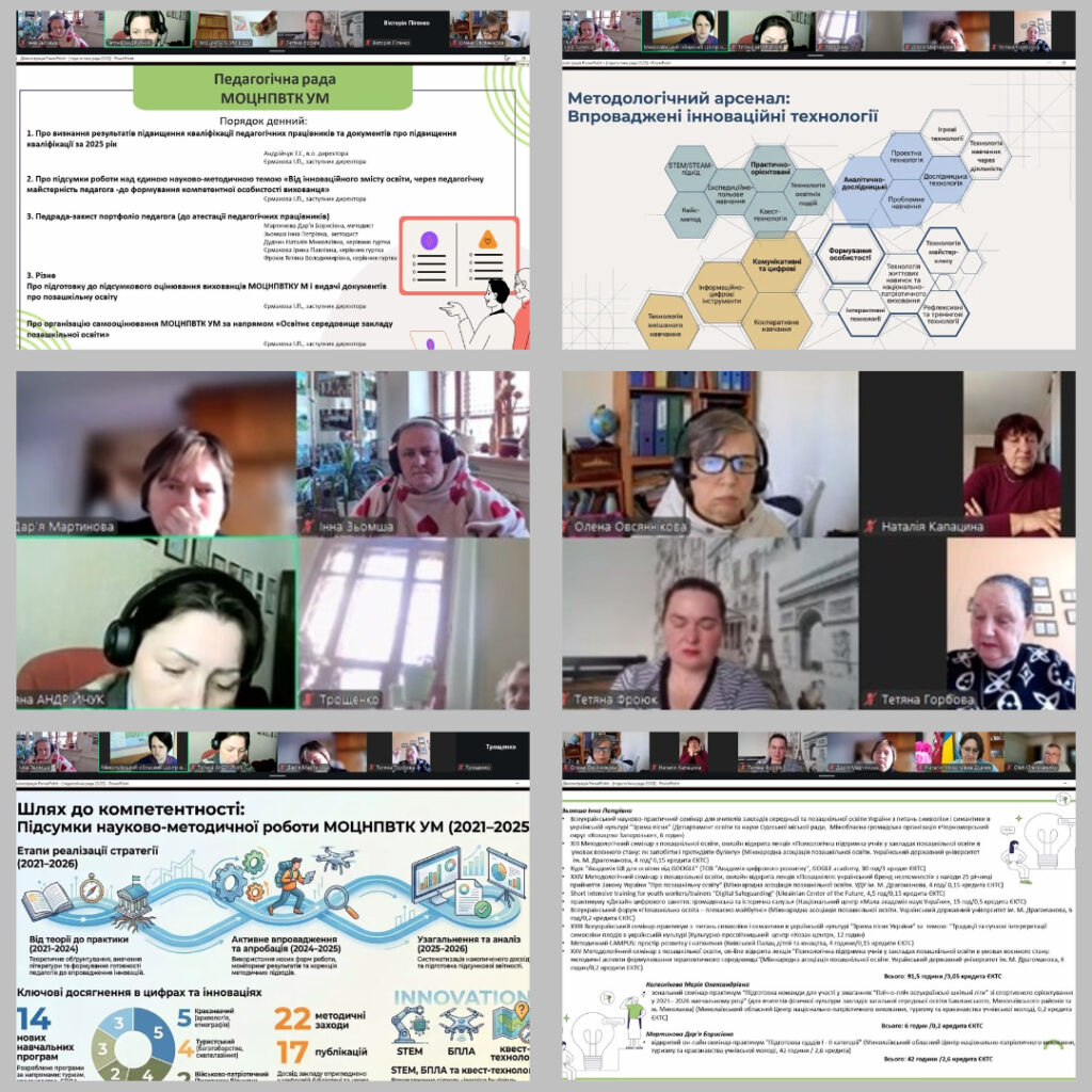 Другий блок засідання був присвячений презентації досвіду роботи педагогів МОЦНПВТК УМ, які атестуються у 2025/2026 н.р.. Свої професійні напрацювання представили Мартинова Д.Б., Зьомша І.П., Єрмакова І.П., Дудчик Н.Г., Фроюк Т.В.. Кожна презентація стала демонстрацією авторського стилю: від використання ШІ-інструментів у краєзнавчих дослідженнях до сучасних методик виховання лідерських якостей. Члени педради відзначили високу результативність та креативний підхід колег, які попри виклики часу знаходять ресурси для професійного зростання.