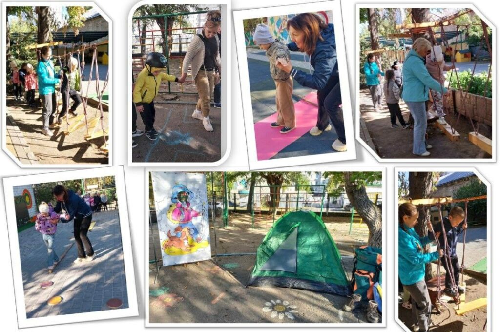 Долаючи мотузковий парк малюки сміливо крокували навісними мостами, долали «небезпечні» переправи та поралися з хиткими мотузками.