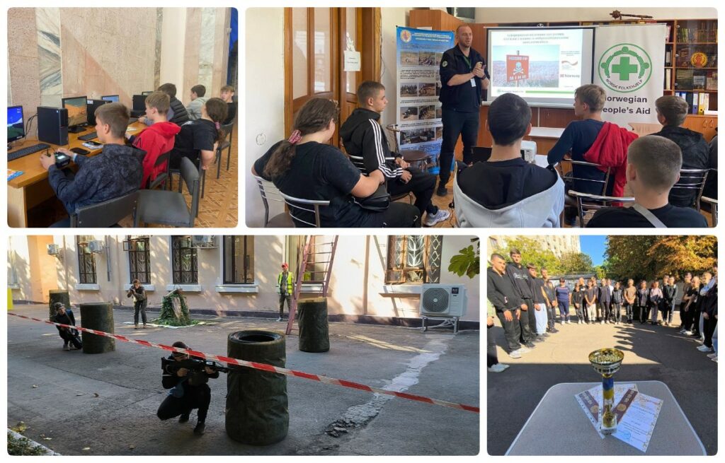 У перерві між двобоями учасники мали нагоду актуалізувати знання з мінної безпеки у ході заняття, яке провели представники міжнародної гуманітарної організації Norwegian People’s Aid, а також потренуватись в управлінні безпілотним літальним апаратом на FPV-симуляторі Liftоff.